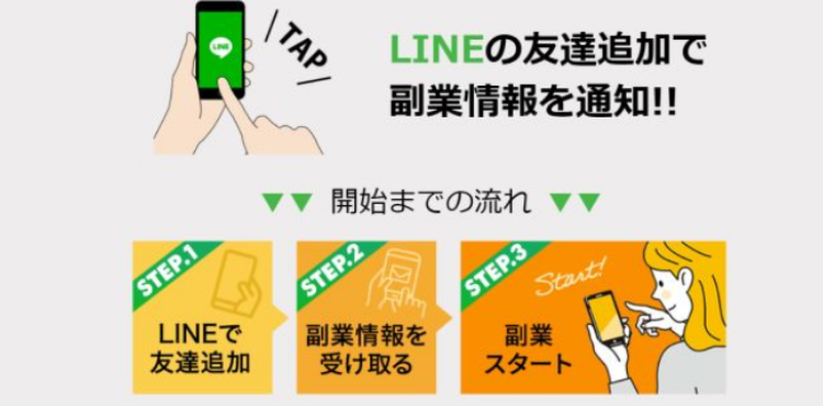 なんでも、「LINEで始めるスマホ副業」はLINE友達追加するだけで最適なスマホ副業を知らせてくれるそうです。