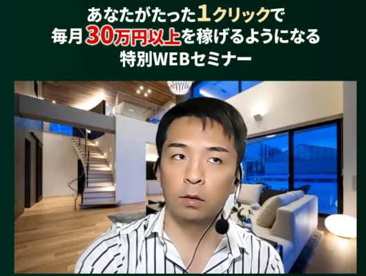 通常ウェビナーでしたが、リアルタイム配信ではなく、録画ですし、背景はいかにも豪邸に住んでます!という演出がされていますが、ただの合成画像です。