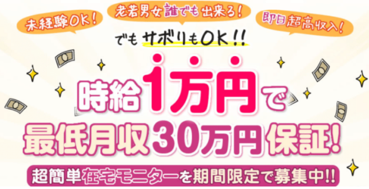 更に、「最低月収30万円を保証」などという、明らかな誇大広告でユーザーを囲うやり口は、良心的な案件とは言えません。