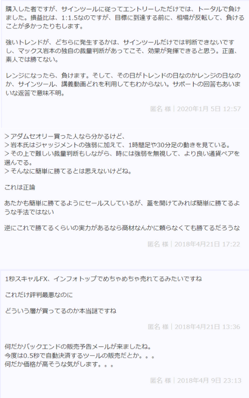 - MAX岩本は講師としてもきな臭い人物で信用できない。