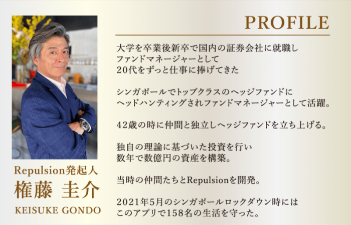 このRepulsion(リパルション)の発起人である「権藤圭介」ですが、ランディングページにプロフィールがありますね。