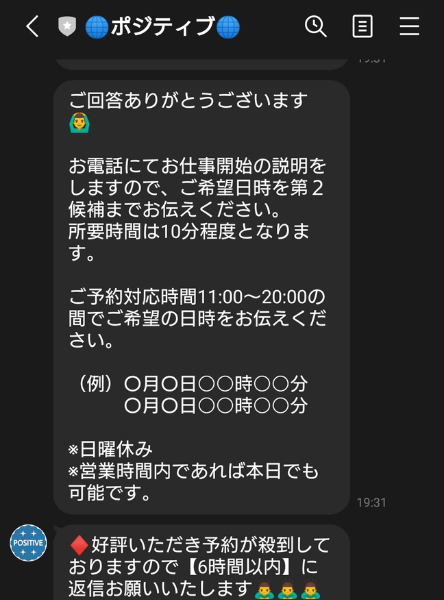 ちなみに、このこのサクセス(スマホWORK)の公式LINEに登録して、簡単なアンケートに答えると以下のメッセージが送られてきます。