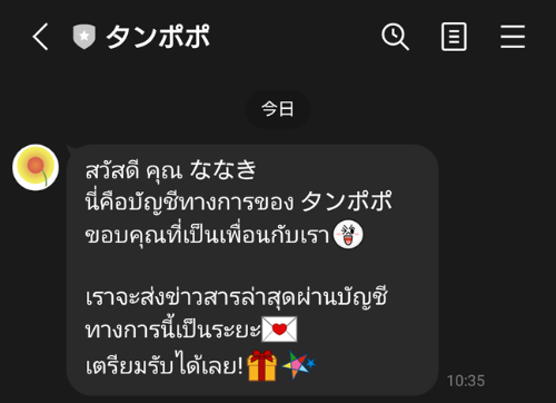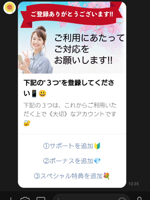 「タンポポ」の公式LINEに登録してみると、以下のメッセージが送られてきました。