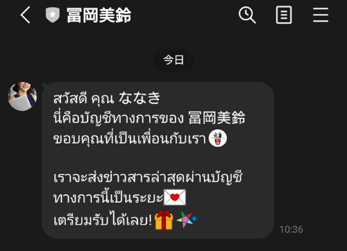 「サポート追加」のアカウントである”冨岡美鈴”にいたっては以下のメッセージが送られてきたのみでした。