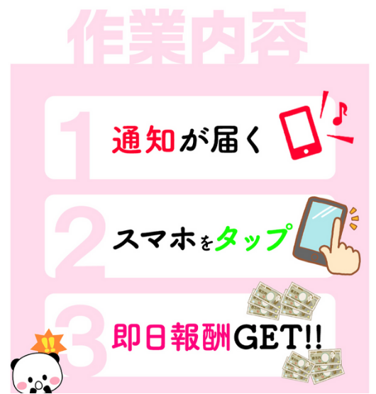 通知が届く → スマホをタップ → 即日報酬GET
