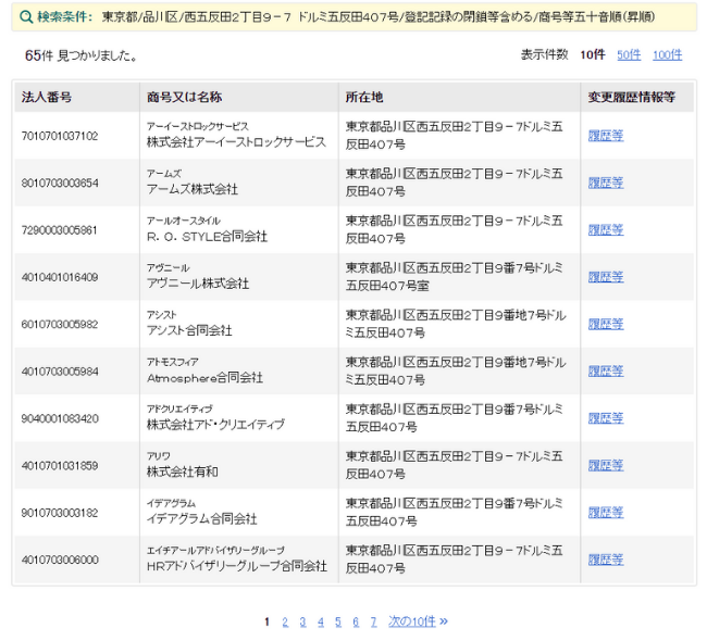 また、ここに書かれてる住所ですが、同じ場所にかなりの数の企業が存在してますね。