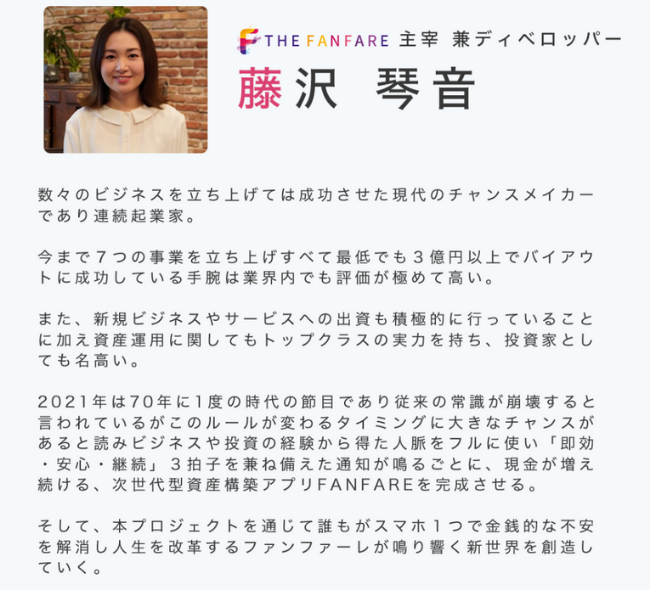 このTHE FANFARE(ザ・ファンファーレ)の発起人である藤沢琴音氏について調査してみます。