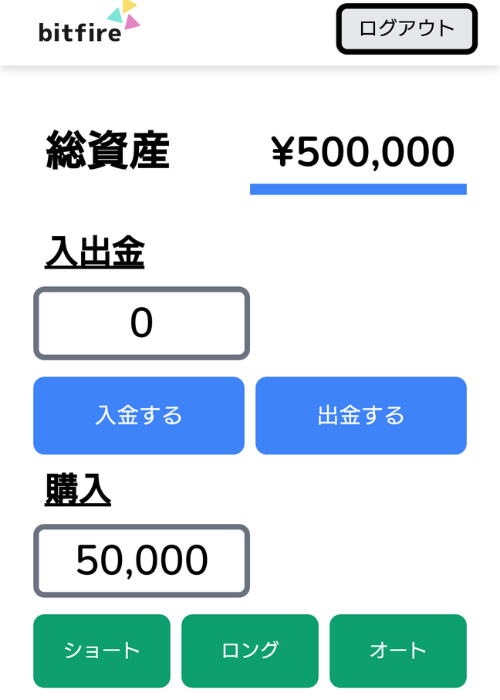 しかも、「資産」のところを見ると50万円が入金済みの状態です。