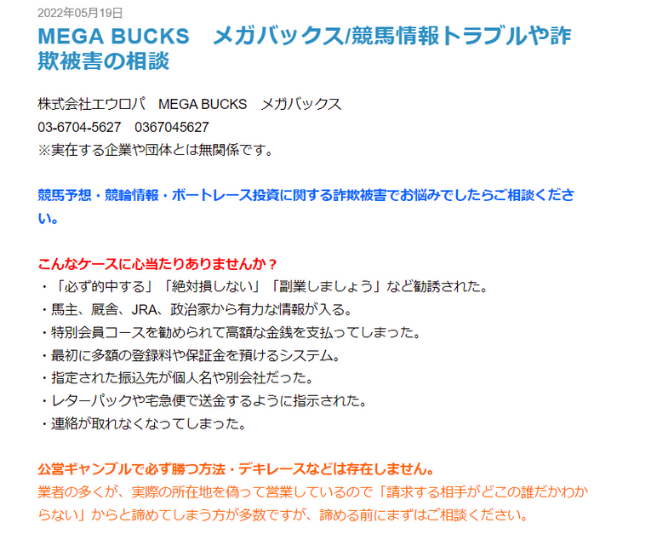 調査しいている過程で、MEGA BUCKS(メガバックス)の詐欺被害の相談を受け付けている会社を見つけました。