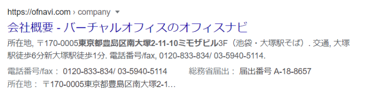 まず所在地ですが調べたところ、この住所はバーチャルオフィスでした。