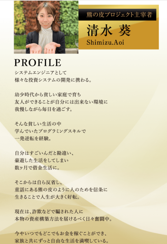 熊の皮プロジェクト主宰者・清水葵氏について調査します。
