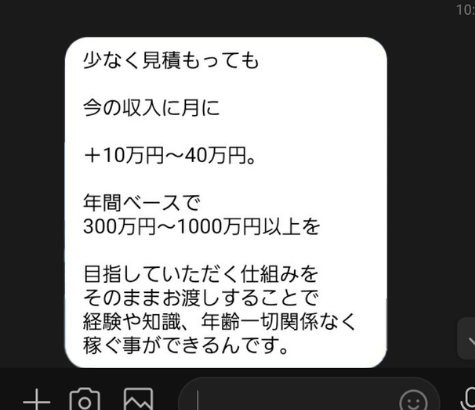 にも関わらず、月収が少なく見積もって+10~40万円稼げるとか言われても、信用はできません。