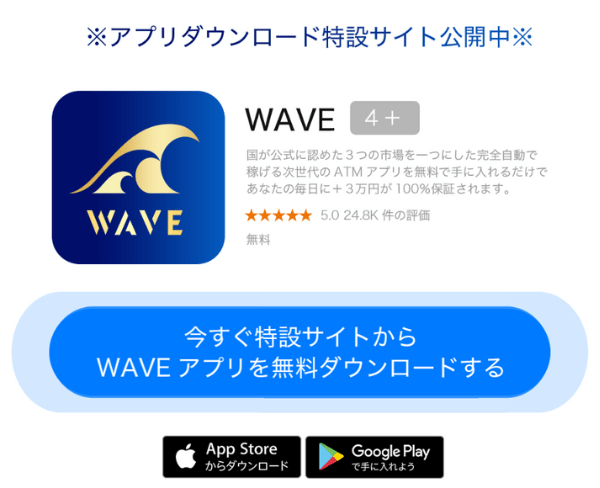 何度も言いますが、Google PlayやApple Storeには「WAVE」という資産運用アプリは存在しません。